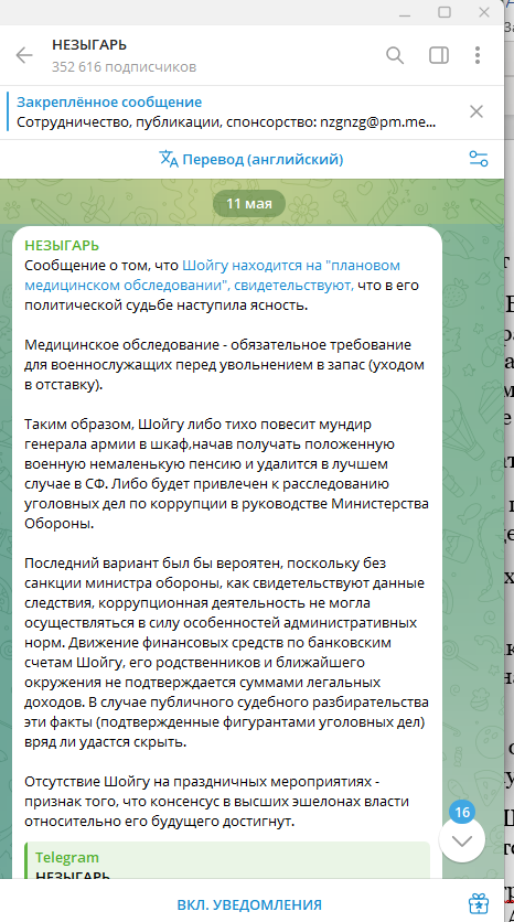 Поместили эти "вбросы" в телеграм-канале "Незыгарь"*, претендующем на статус политического инсайдера. А дальше весь "пучок" родственных "Незыгарю"* каналов стал делать репосты. Схема отработанная, очень часто используемая командой олигарха Михаила Ходорковского* для продвижения того или иного нарратива. В частности, Шойгу эта команда пытается свалить на протяжении нескольких лет, только вот никак не получается. Хотя фактуры, давайте уж говорить честно, было хоть отбавляй. Свежий инфовброс интересен традиционным неуважением к собственной аудитории - всё придуманное до него (в том числе посольские "погоны" Шойгу) игнорируется и получается уже такая картинка:
