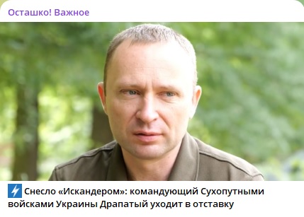 Напомним, что Драпатый попал в опалу после того, как русские ракеты прилетели в место сбора украинских военных и западных инструкторов. По данным украинской стороны, 12 человек погибли, 60 получили ранения. Но есть серьёзные подозрения, что реальные потери куда выше.