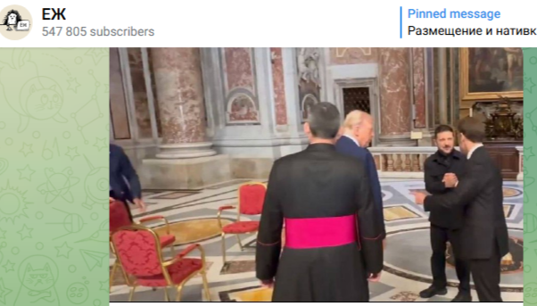 Пользователи соцсетей, Telegram-каналы изучили фото и видео с переговоров лидера Соединённых Штатов Дональда Трампа и исполняющего обязанности президента Украины Владимира Зеленского в Риме и обратили внимание, что изначально в зале, где проходила встреча, было три стула.