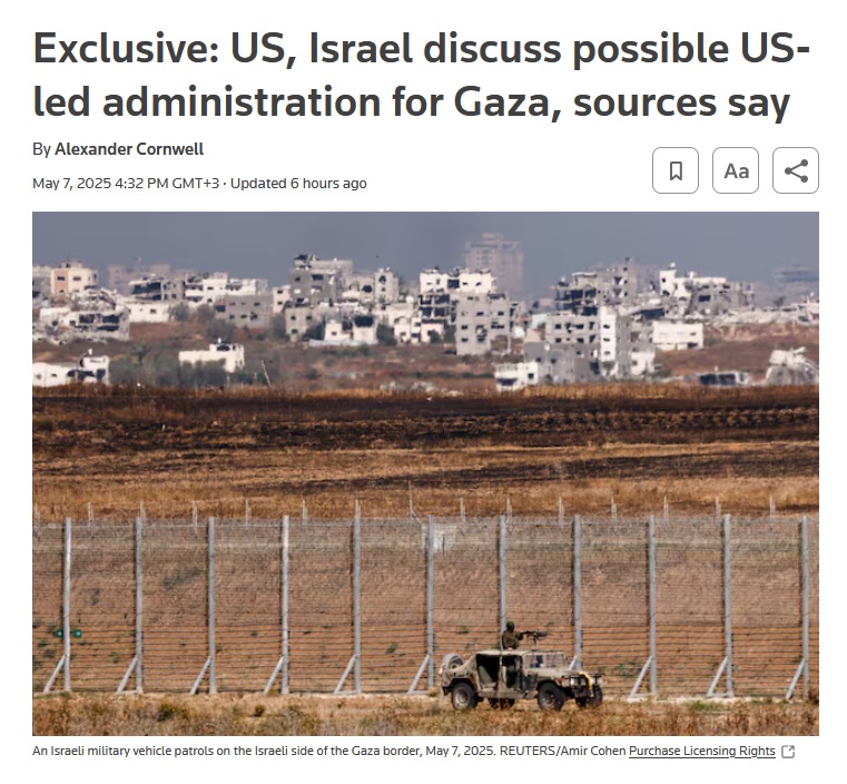 И вот Reuters сообщает, что между США и Израилем идут консультации на высоком уровне. Утверждается, что переговоры были сосредоточены вокруг темы переходного правительства во главе с американским чиновником.