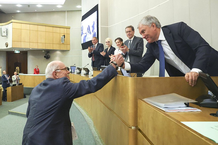 И я знаю, что вы уже принимали в первом чтении Закон о русском языке. Я знаю, что сегодня вы тоже будете принимать во втором и третьем чтении этот закон. Важнейший закон. Язык - это достояние народа, это его гордость, это его сила. Тем более, русский язык, на котором написаны величайшие произведения. Практически можно знать одного Пушкина - и понимать все вопросы бытия человека, хотя это было написано 200 лет назад. Потому что это русский язык. Им нужно гордиться, и им воевать,