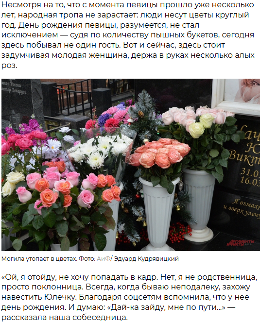 - рассказала одна из поклонниц певицы, встреченная на кладбище корреспондентом "АиФ".