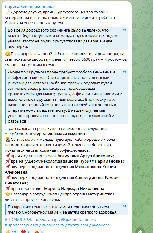 - сообщил врач-акушер-гинеколог, заведующий оперблоком Артур Аглиуллин. Остаётся поаплодировать квалификации сургутских медиков.