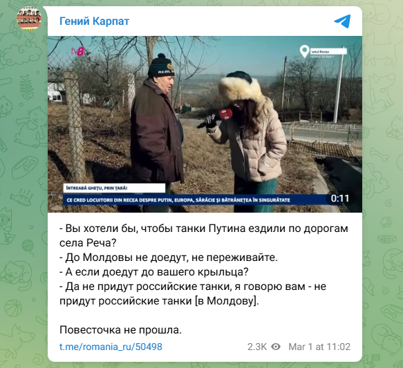 ФОТО: Скриншот https://t.me/romania_ru