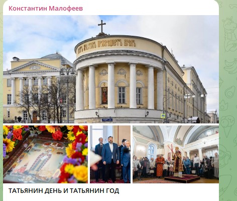 Константин Малофеев добавил, что юбилейный, 2025 год, "на который у нас намечено немало планов и трудов, уже становится самым настоящим Татьяниным годом".