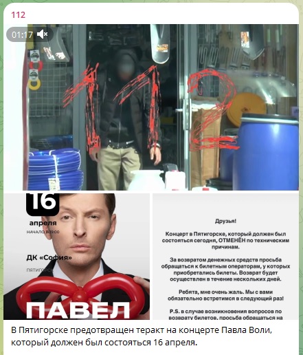 В Пятигорске предотвращён теракт на концерте Павла Воли, который должен был состояться 16 апреля. Украинские вербовщики действуют в мёртвой зоне и нанимают исполнителей "за три копейки", рассказал генерал-майор ФСБ.