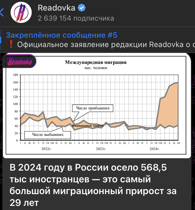 Как уже говорилось выше, в прошлом году Россия зафиксировала рекордный миграционный прирост, составивший 568,5 тысячи человек. По информации Росстата, в страну въехало 4 миллиона иностранцев, в то время как выезд составил 3,5 миллиона. Это число в 2,8 раза превышает данные за 2023 год и является лишь немного ниже рекорда 1995 года, когда прирост составил 599 тысяч человек.