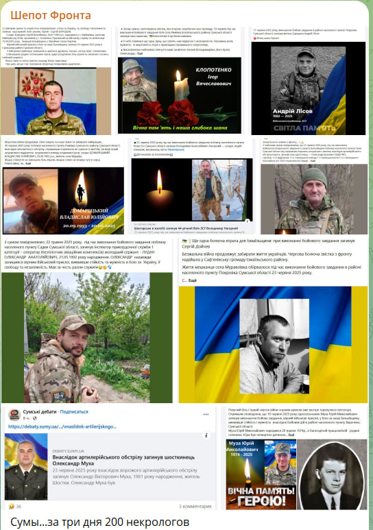 В Сумах, пишет Татаринов, настоящий ад. За три дня более 200 некрологов. И это только те, что публикуются в открытом доступе: