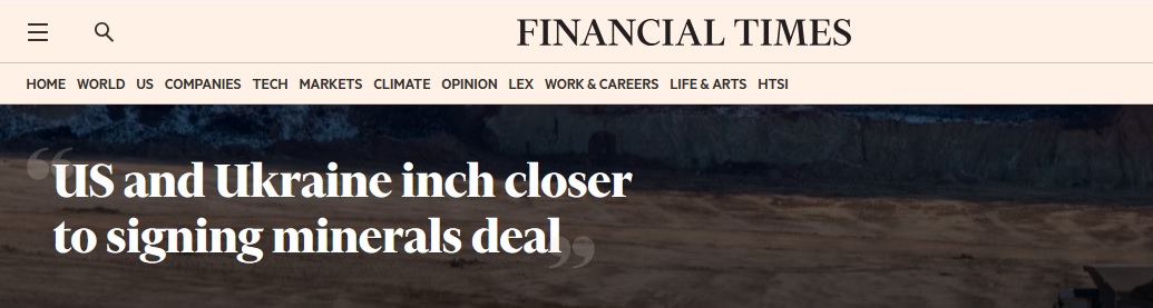 США и Украина планируют подписать соглашение о ресурсах на этой неделе, пишет FT. "Киев станет реальной экономической колонией Вашингтона", - считает украинский инсайдер.