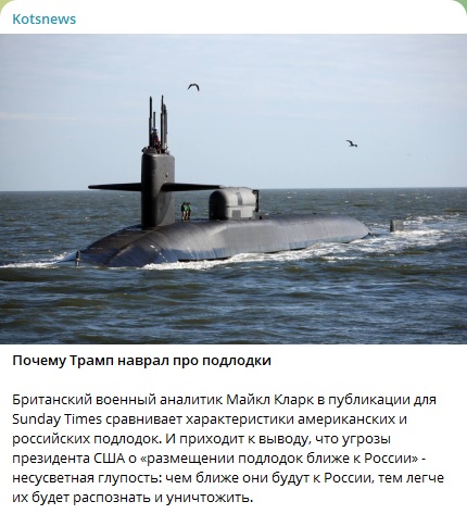 Напомним, что незадолго до сообщения про перемещение атомных подлодок Трамп сообщил, что с начала этого года ВСУ потеряли лишь 8000 военных, а у России потери уже больше 100 тысяч. Даже на Украине вряд ли будут спорить с тем, что данные цифры - полная чушь.