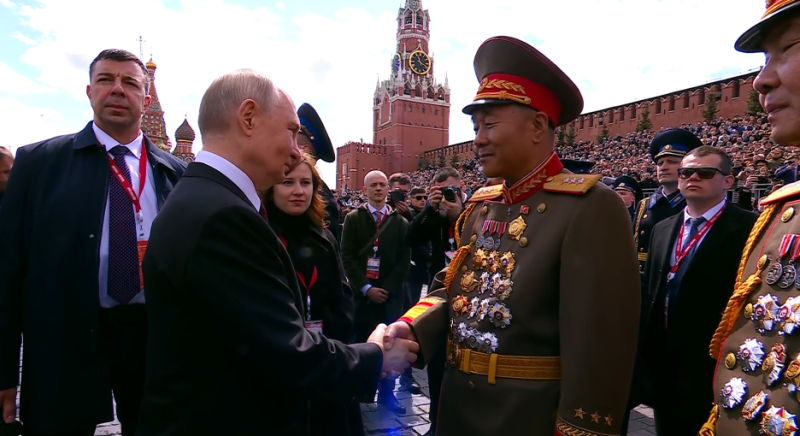 Особой частью парада стало приветствие президентом России Владимиром Путиным военных из КНДР. Верховный главнокомандующий поблагодарил генералов из Северной Кореи. Настрой у военных был явно боевой и задорный.