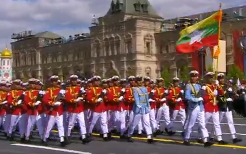Особенность парада этого года - участие военных иностранных государств. Они принимают участие только в юбилейных торжествах. Парадным маршем по Красной площади прошли военнослужащие из Казахстана, Таджикистана, Киргизии и других стран бывшего СССР. Кроме того, в параде приняли участие военнослужащие из Китая и других стран Азии. Особенно колоритно смотрелись солдаты из Мьянмы, одетые в парадную форму. Выглядели они действительно впечатляюще.