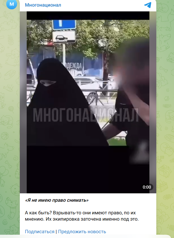 Он также делится информацией, что носительница никаба собирается писать жалобы на сотрудников полиции. Женщина полагает, что они попрали её права.