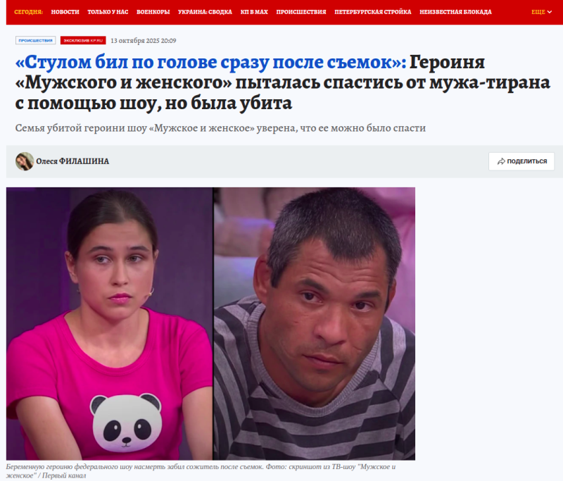 После участия в шоу "Мужское/Женское" жизнь 28-летней Людмилы Шуруновой трагически оборвалась. Её бывшая свекровь пыталась спасти девушку от жестокого сожителя, обратившись на телевидение в надежде на помощь, но тщетно - огласка лишь усугубила ситуацию.