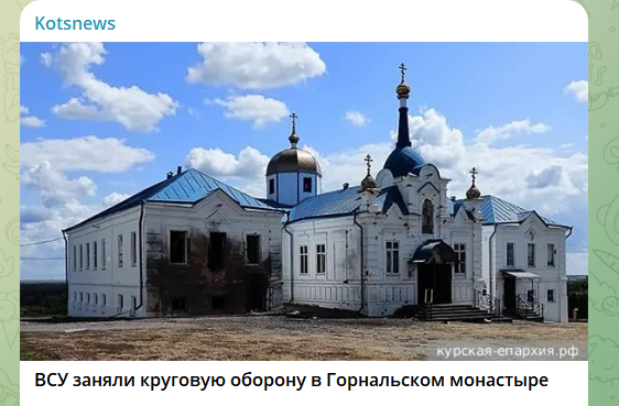 Горналь находится в приграничной зоне, и монастырь, расположенный на возвышенности, представляет собой серьёзное укрепление, трудное для штурма. Об этом сообщил военкор Александр Коц.