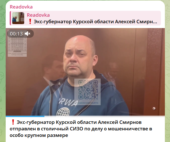 Ранее сообщалось, что Алексей Смирнов заключён под стражу по решению Мещанского суда Москвы. Он обвиняется в особо крупном мошенничестве (ч. 4 ст. 159 УК РФ). Ему вменяется участие в хищении более 1 млрд рублей, выделенных на строительство фортификаций на границе Курской области с Украиной. Арест продлён на два месяца. Его предполагаемый соучастник также проходит по этому делу.