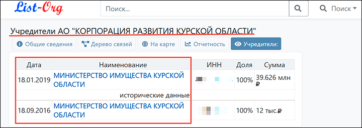 ДАННЫЕ ОБ АО "КОРПОРАЦИЯ РАЗВИТИЯ КУРСКОЙ ОБЛАСТИ" В БАЗЕ ЕГРЮЛ. СКРИНШОТ СТРАНИЦЫ САЙТА CHECKO.RU