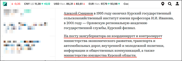 Ответ кроется в структуре управления: учредителем КРКО является Министерство имущественных и земельных отношений Курской области, которое до своего назначения врио губернатора курировал лично Смирнов, будучи заместителем главы региона. Таким образом, все крупные проекты, включая многомиллиардное строительство фортификаций, не могли реализовываться без его ведома.