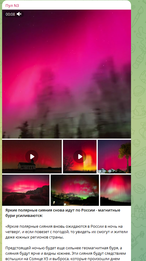 Необычно сильные магнитные бури вызвали полярные сияния там, где их обычно не бывает. Россию накрыло это удивительное по красоте явление.