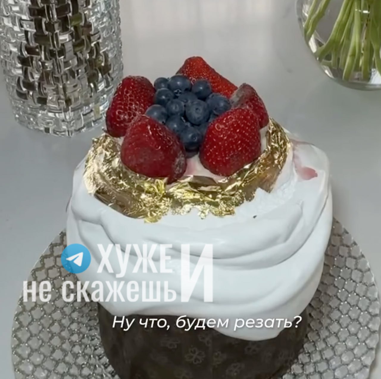Речь идёт про "кулич", если его можно так назвать, с начинкой из дубайского шоколада, украшением из клубники и голубики, а также с куполом из рисовой муки и белого шоколада. Такой кулич был замечен на праздничном столе Филиппа Киркорова, после чего угощение бросились покупать другие "звёзды" и "инфлюенсеры".
