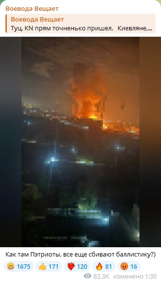 Туц, КN прям точненько пришёл. Киевляне, запасайте генераторы. Вообще "Кимскандеры" - штука прикольная. Неточная, но зато их много и за недорого,