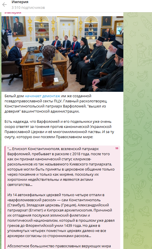 Есть надежда, что Варфоломей и его подельники уже очень скоро ответят за гонения против канонической Украинской Православной Церкви и её многомиллионной паствы. И за ту смуту, которую они посеяли в Православном мире,