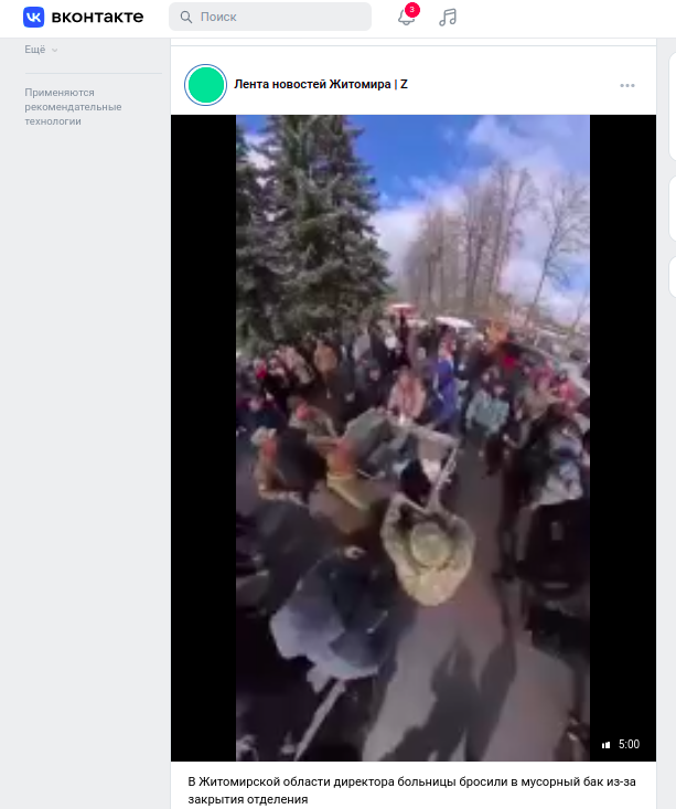 Фото: скриншот VK/"Лента новостей Житомира | Z"