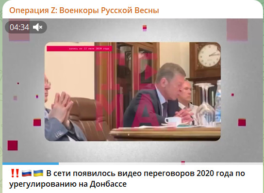 На кадрах глава офиса Зеленского Ермак спорит с замглавы администрации президента России Козаком. Ермак утверждает, что по 98% пунктов между Украиной и РФ "есть согласие". Козак сразу же парирует, что украинская редакция "на 100% расходится" с российским предложением. Козак далее высказывает мнение, что Украина пытается реализовать "хитрый секретный политический план" - принять документ без конкретных деталей, чтобы впоследствии обвинить Россию в его нарушении и продолжить конфликт.