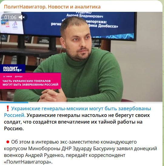 В интервью экс-заместителю командующего корпусом Минобороны ДНР Эдуарду Басурину донецкий военкор Андрей Руденко рассказал о том, на что именно могут указывать странные и самоубийственные приказы ряда украинских генералов-"мясников" - именно они вполне могут быть завербованы Россией. Они настолько не берегут своих солдат, что создаётся впечатление их тайной работы на русскую армию:
