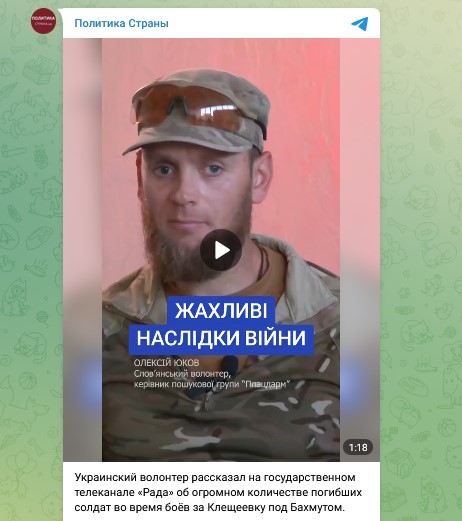 В эфире телеканала "Рада" Алексей Юков рассказал то, о чём по сей день предпочитает молчать Киев. В частности, по его словам, во время боёв за Клещеёвку и Бахмут Украина потеряла колоссальное число своих военных.