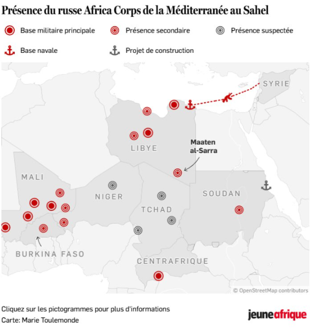 Есть и более глобальная цель. Москва создаёт воздушный мост между Средиземноморьем и Сахелем, фиксирует в своём новом расследовании издание. По мнению журналистов, Россия формирует логистический узел, объединяющий целый архипелаг баз, простирающихся от Северной Ливии до юга Центрально-Африканской Республики. Цель - облегчить переброску людей и техники своим союзникам в регионе. Это также может затруднить доступ французских и американских войск к этим районам,