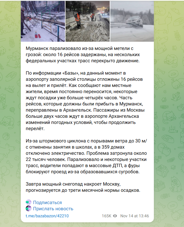 Настоящий погодный апокалипсис переживает Мурманск, а на очереди уже Москва. В северном городе разыгралась невероятно сильная метель, да ещё и с грозой. В итоге Мурманск оказался парализован. Трассы перекрыты: погода подвела, что обернулось массовыми ДТП. На паузе и аэропорт: все рейсы на стопе, пока метель не уймётся.
