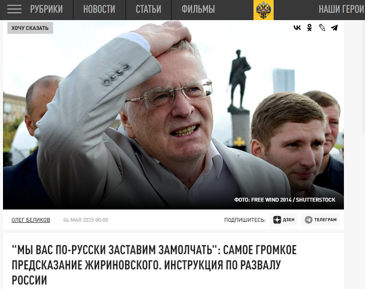 "Мы вас по-русски заставим замолчать": Самое громкое предсказание Жириновского. Инструкция по развалу России Фото: Царьград