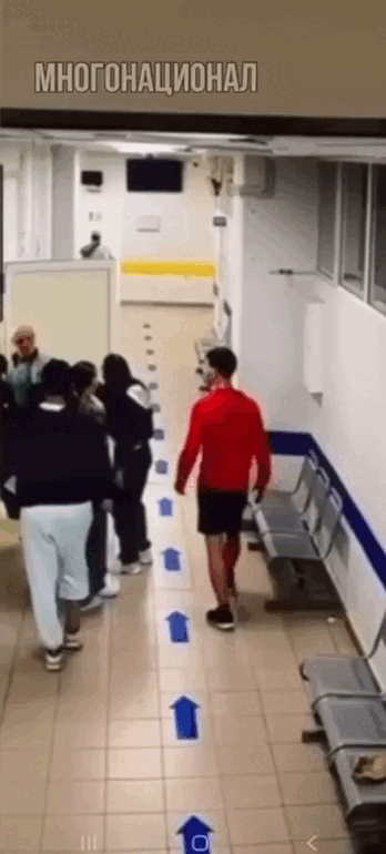 На кадрах видно, как толпа мужчин характерной наружности собралась у кабинета врача и пытается что-то выяснить. Среди них выделяется мужчина в красной футболке. Девушка пытается увести его в сторону. Он сначала отходит, но затем резко врывается в кабинет, и завязывается драка.