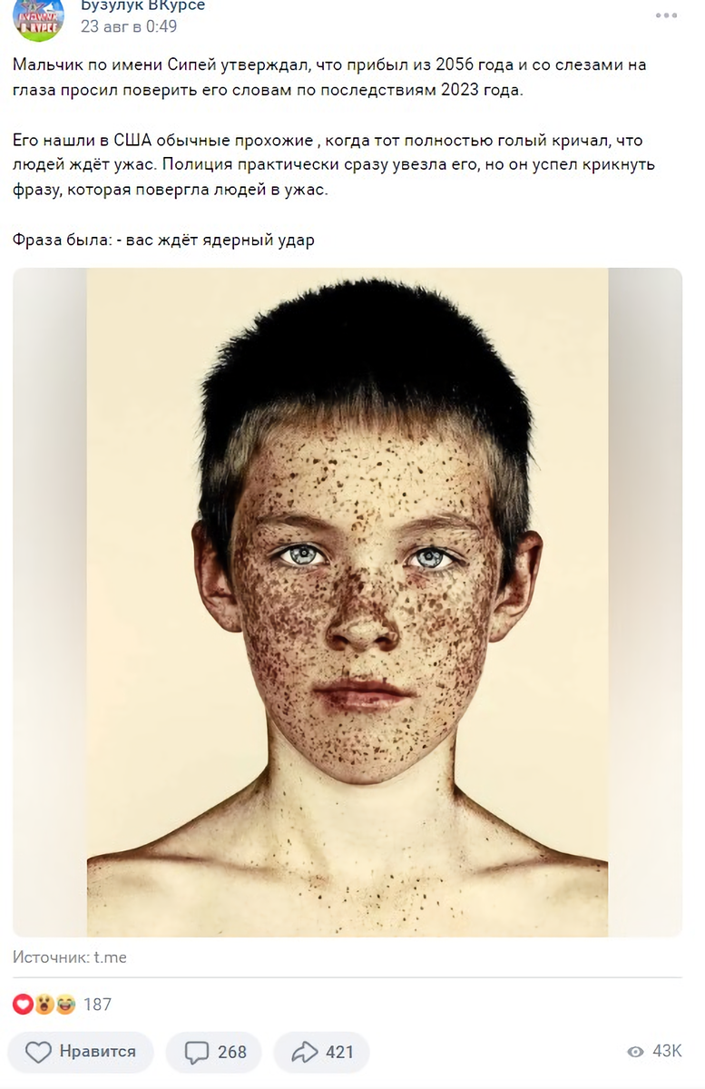 Пример публикации с подобным пророчеством. Скриншот/"Бузулук в курсе"