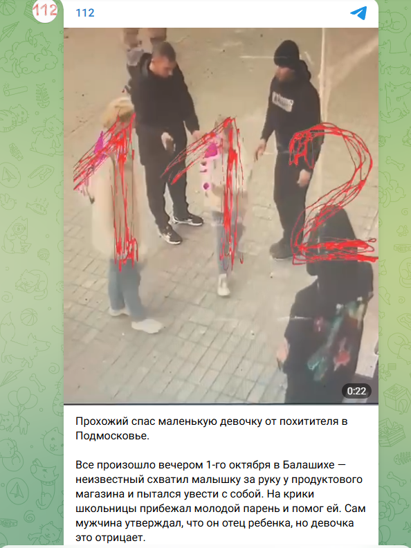 Кадры с камеры видеонаблюдения запечатлели картину: за маленькой девочкой бежит взрослый мужчина. Ребёнок пытается спастись от преследователя, заскочив в продуктовый магазин, но тот хватает школьницу прямо на пороге. И тащит куда-то в сторону.