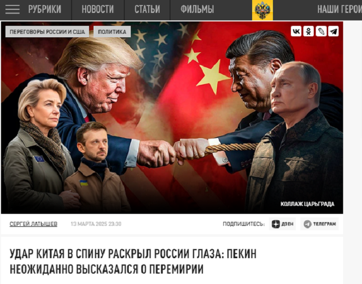 Удар Китая в спину раскрыл России глаза: Пекин неожиданно высказался о перемирии Фото: Царьград