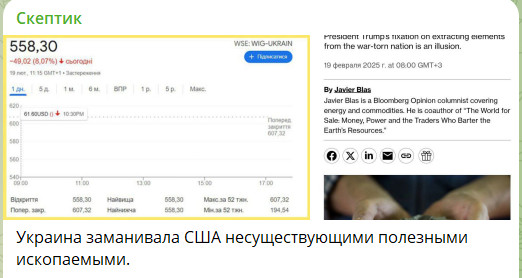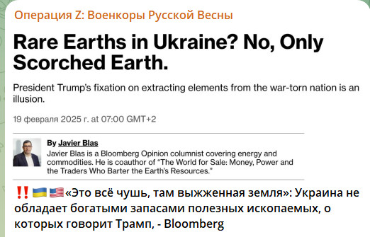Куда более жестко об обмане выразился Bloomberg: "Это всё чушь, там выжженная земля. Украина не обладает богатыми запасами полезных ископаемых, о которых говорит Трамп".