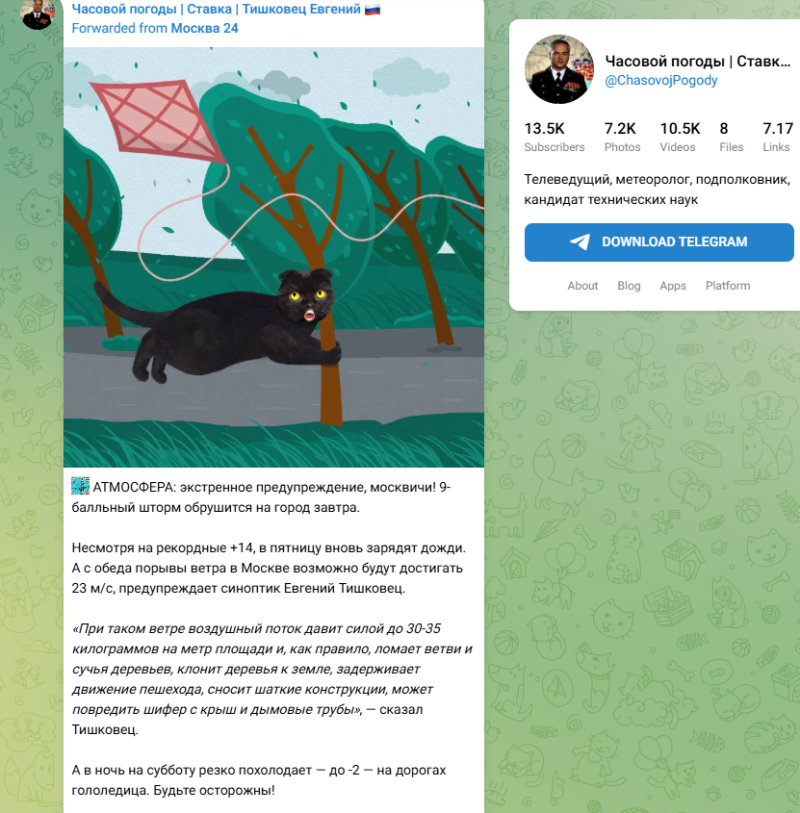 Скриншот: https://t.me/ChasovojPogody