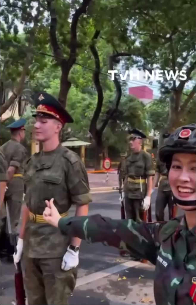 А в Сети тем временем появился необычный ролик, запечатлевший, как вьетнамская девушка-военнослужащая оказывает знаки внимания русскому солдату, который участвует в репетиции парада.