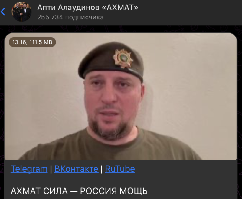 СКРИНШОТ ТГ-КАНАЛА "АПТИ АЛАУДИНОВ"