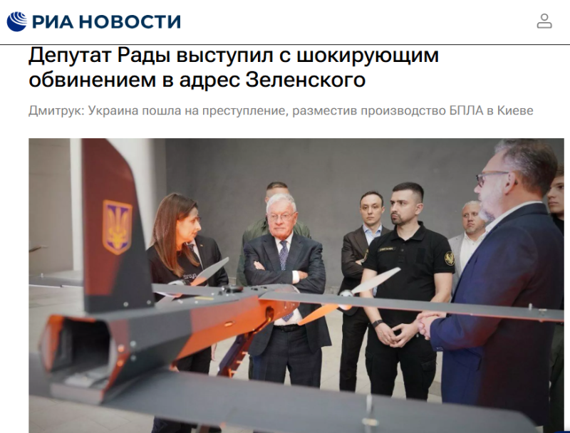 Скандал подхлестнул ещё один эпизод: Келлог, по украинским сообщениям, посетил в столице площадку, где демонстрировались почти три десятка образцов украинских беспилотников. Депутат Артём Дмитрук использовал это как повод для тяжёлого обвинения. Он указал, что речь идёт о производстве БПЛА "в центре Киева", рядом с жилыми кварталами, школами, церквями; люди в этих районах фактически превращены в живой щит. В своём телеграм‑посте он заявил: