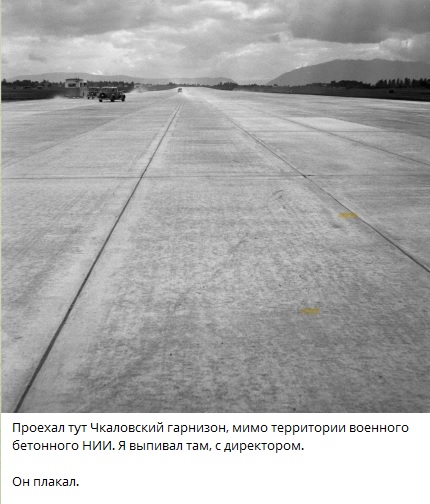 Проехал тут Чкаловский гарнизон, мимо территории военного бетонного НИИ. Я выпивал там, с директором. Он плакал. Министр обороны Сердюков разогнал и убил НИИ, разрабатывающий многочисленные секретные марки авиационного бетона,