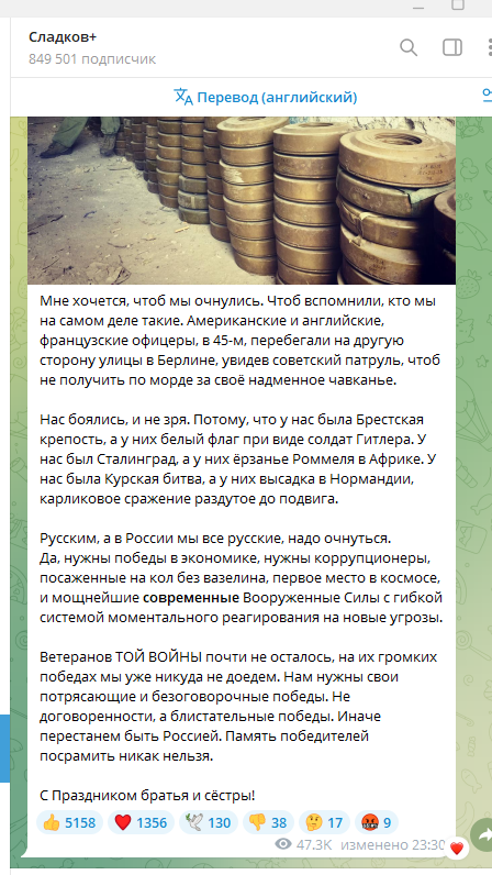 Скриншот: https://t.me/Sladkov_plus/13082.