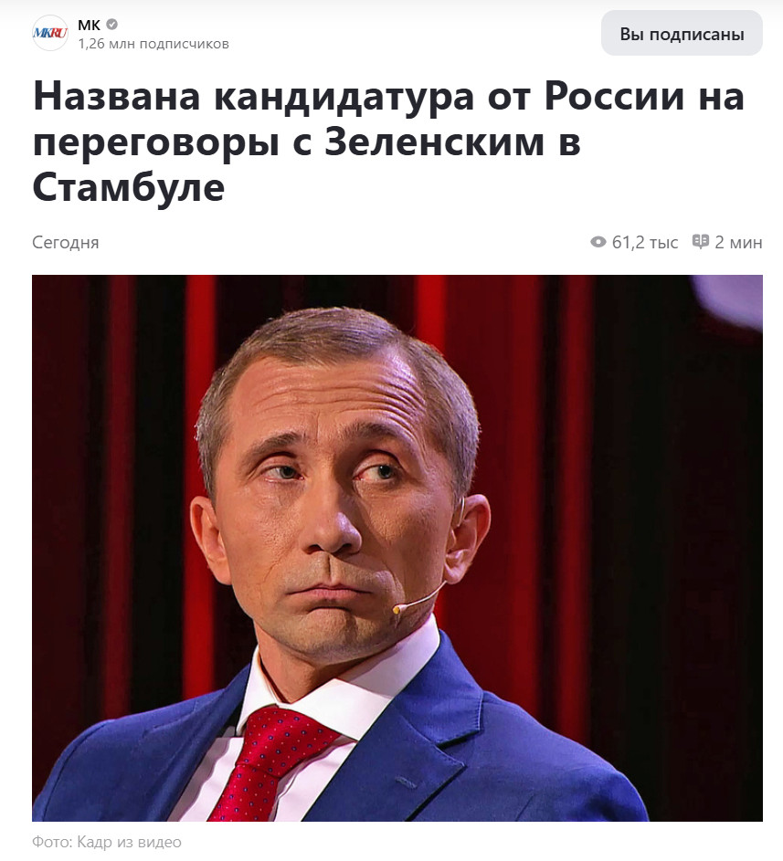Комика - комиком, или Кто встретится с Зеленским в Стамбуле. Стала известна кандидатура от России для переговоров с главой киевского режима в Турции: "Володя это точно заценит".