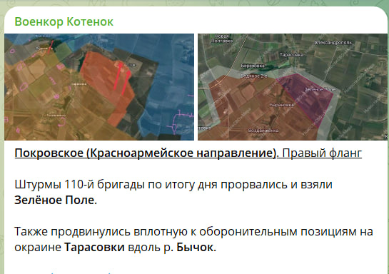 На Константинопольском направлении продолжаются бои в Андреевке и вблизи н.п. Дачное. С юга Покровского направления сообщают об успехах ВС России в селе Запорожье. Восточнее Покровска Минобороны России сообщило об освобождении Водяного Второго. Сообщается об успехах армии России в соседнем н.п. Зелёное Поле. Есть продвижение в Удачном. В Котлино наши парни удержали рубежи в южной части. В северной части Песчаного ВС РФ занимают утраченные ранее позиции, подтверждает издание fedpress.ru.