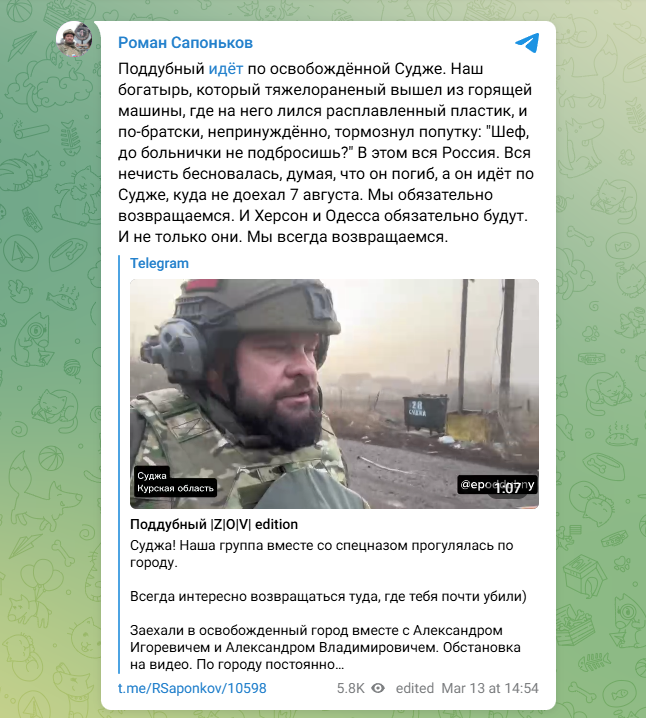 Враг праздновал его смерть. А он выжил и вернулся в Суджу - военкор Поддубный прогулялся со спецназовцами
