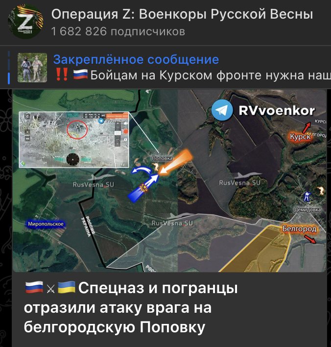 Военкор Юрий Котёнок в своем Telegram-канале сообщил о разгроме нескольких групп сил специальных операций (ССО) Украины в селе Поповка, расположенном на территории Белгородской области. По его словам, украинские спецназовцы предприняли попытку атаковать и захватить опорный пункт, который защищали наши пограничники. Однако, столкнувшись с жестким сопротивлением, противник был вынужден отступить.