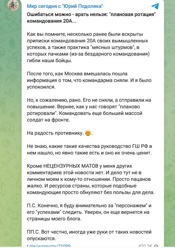 При этом, по сведениям Подоляки, когда информацию начали освещать в публичном поле, те самые командиры принялись "подчищать" следы. Банально отправляли русских солдат в "мясные штурмы".