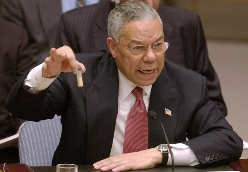 Колин Пауэлл трясёт пробирку. ФОТО: Скриншот с сайта ria.ru